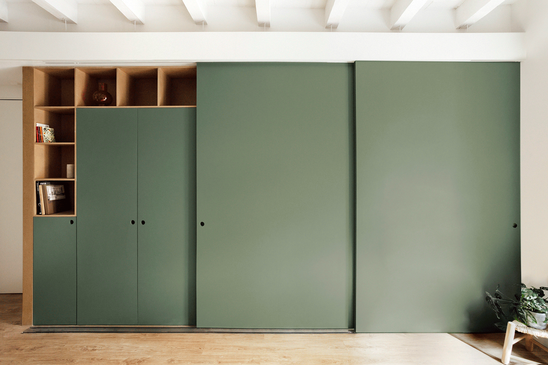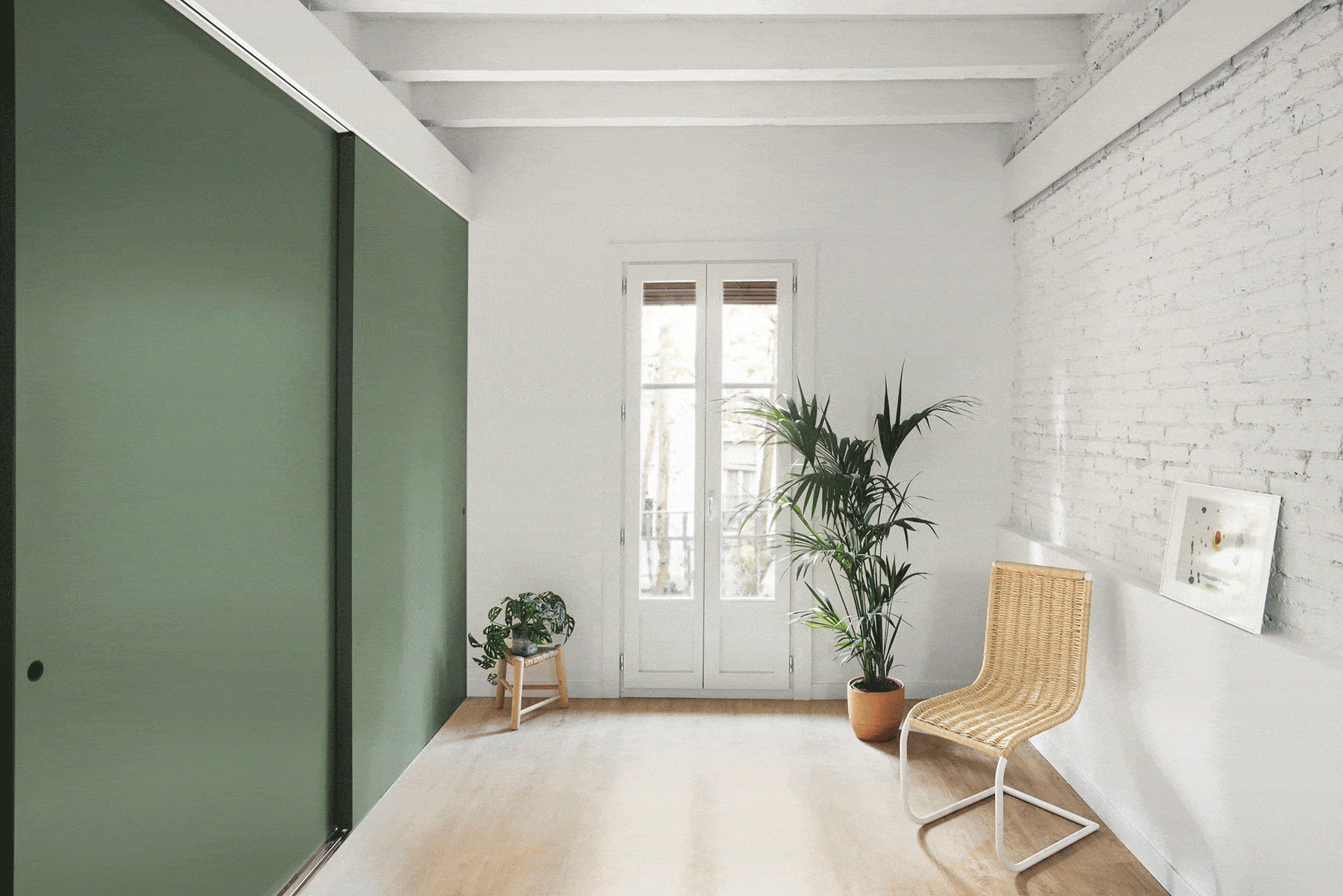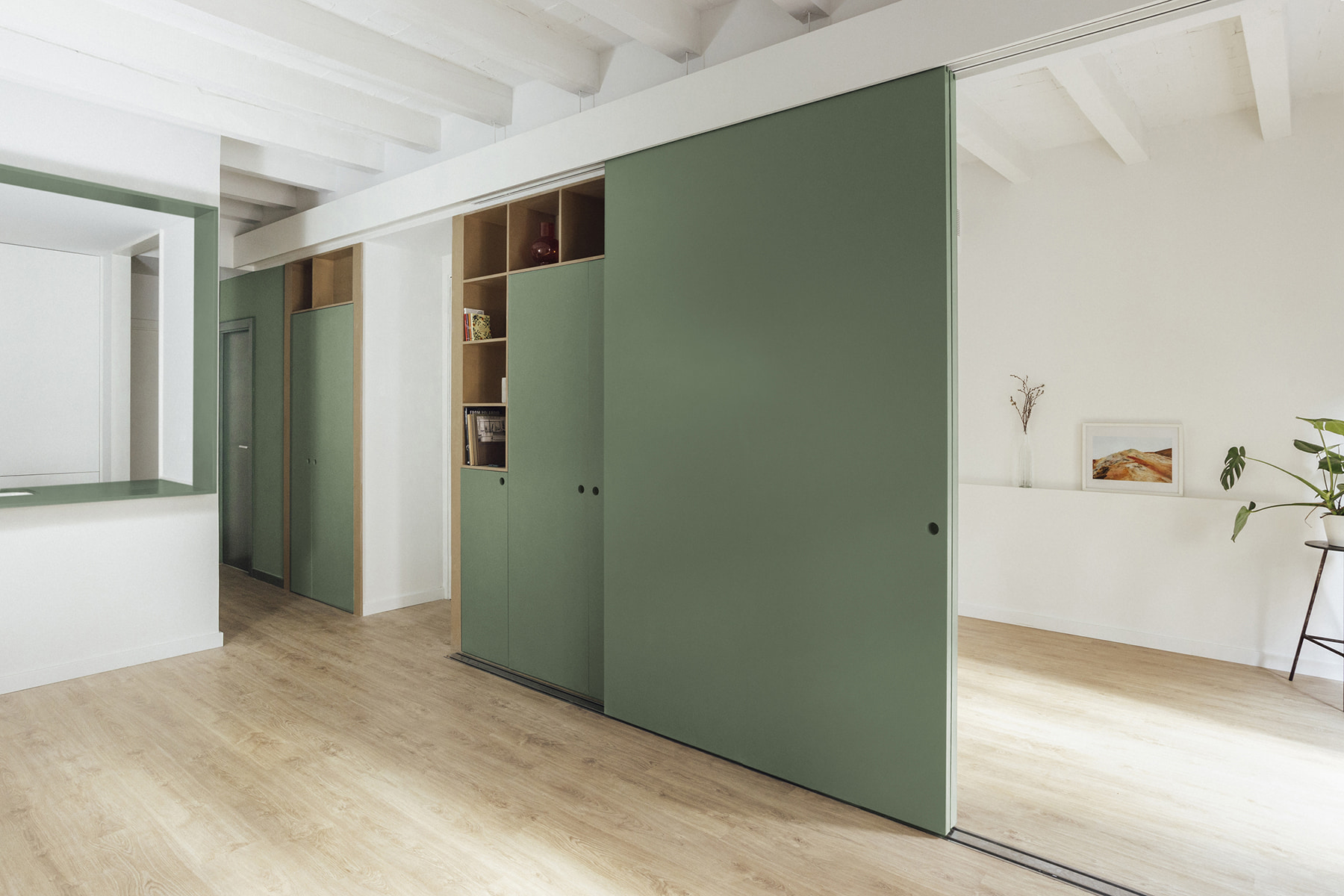 CASTILLEJOS Refurbishment of three small apartments and common spaces in a historical building, completely restructuring the floor plans in order to make the most of the surface area. A large sliding door becomes the main element of the flats enhancing their flexibility of use.
