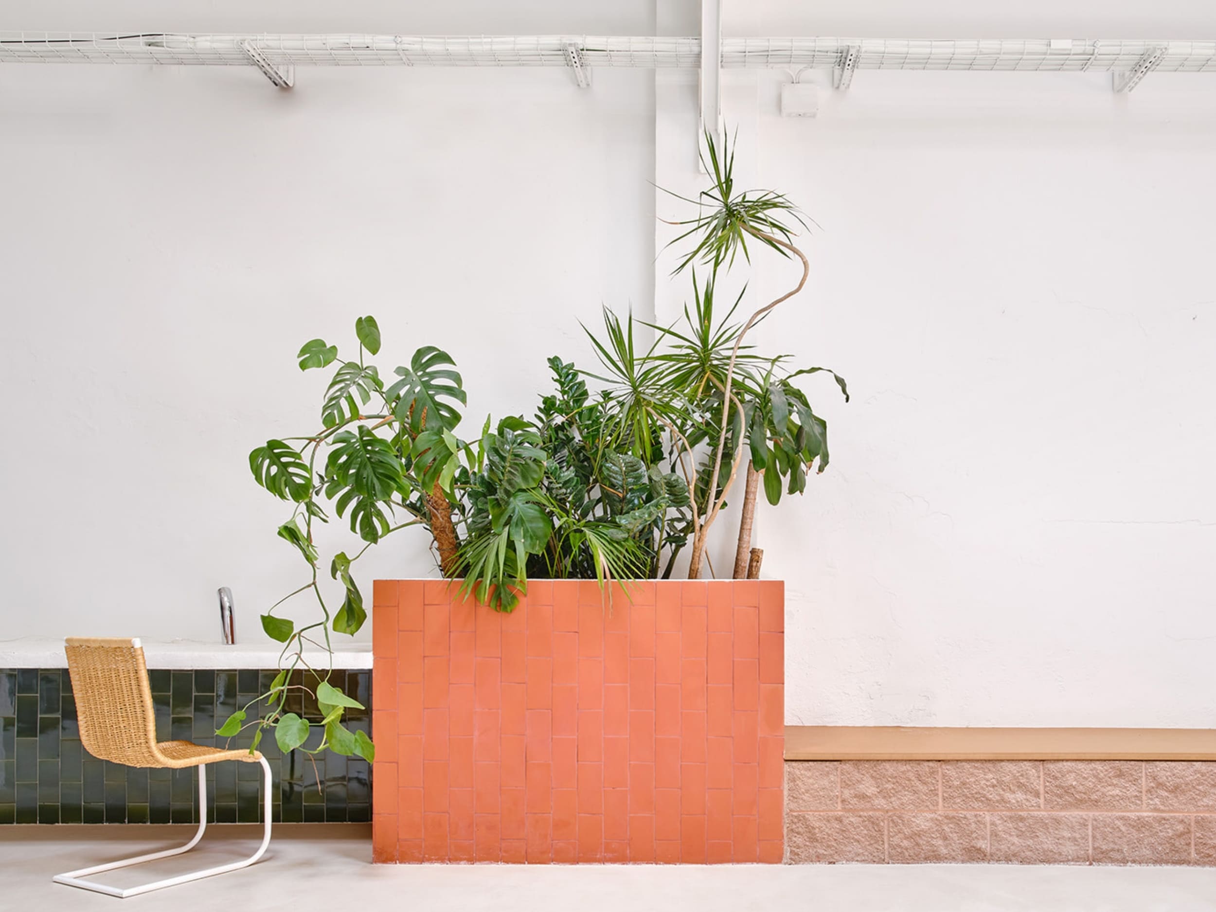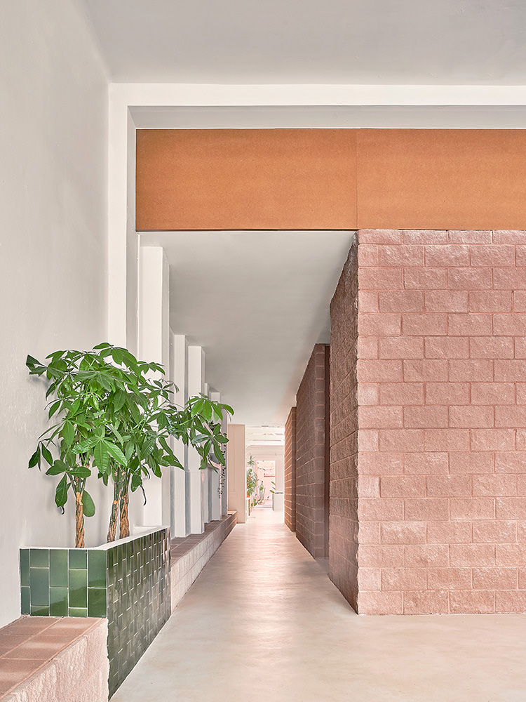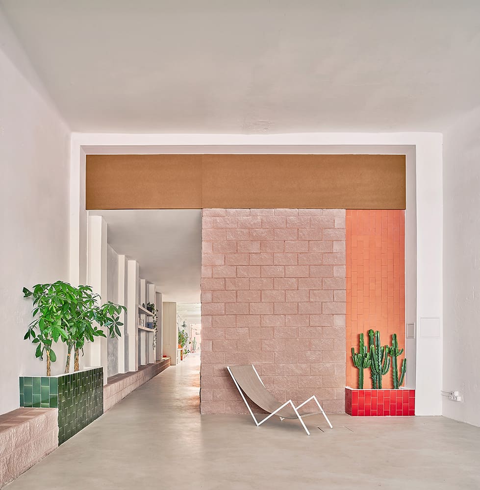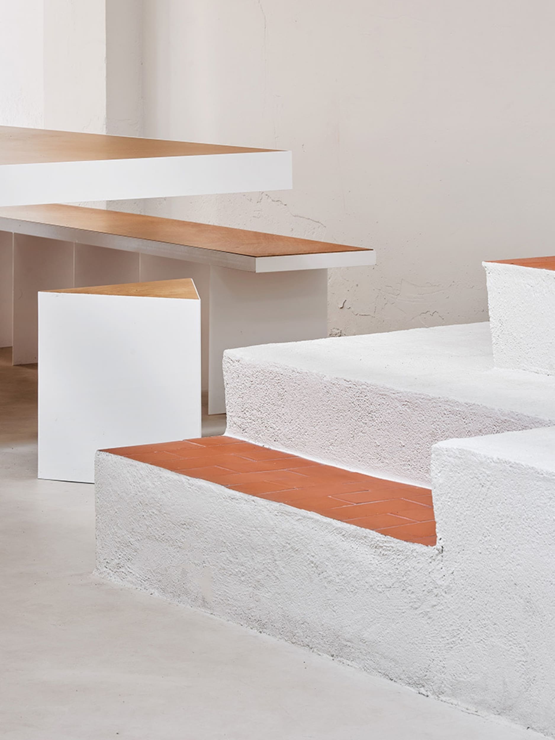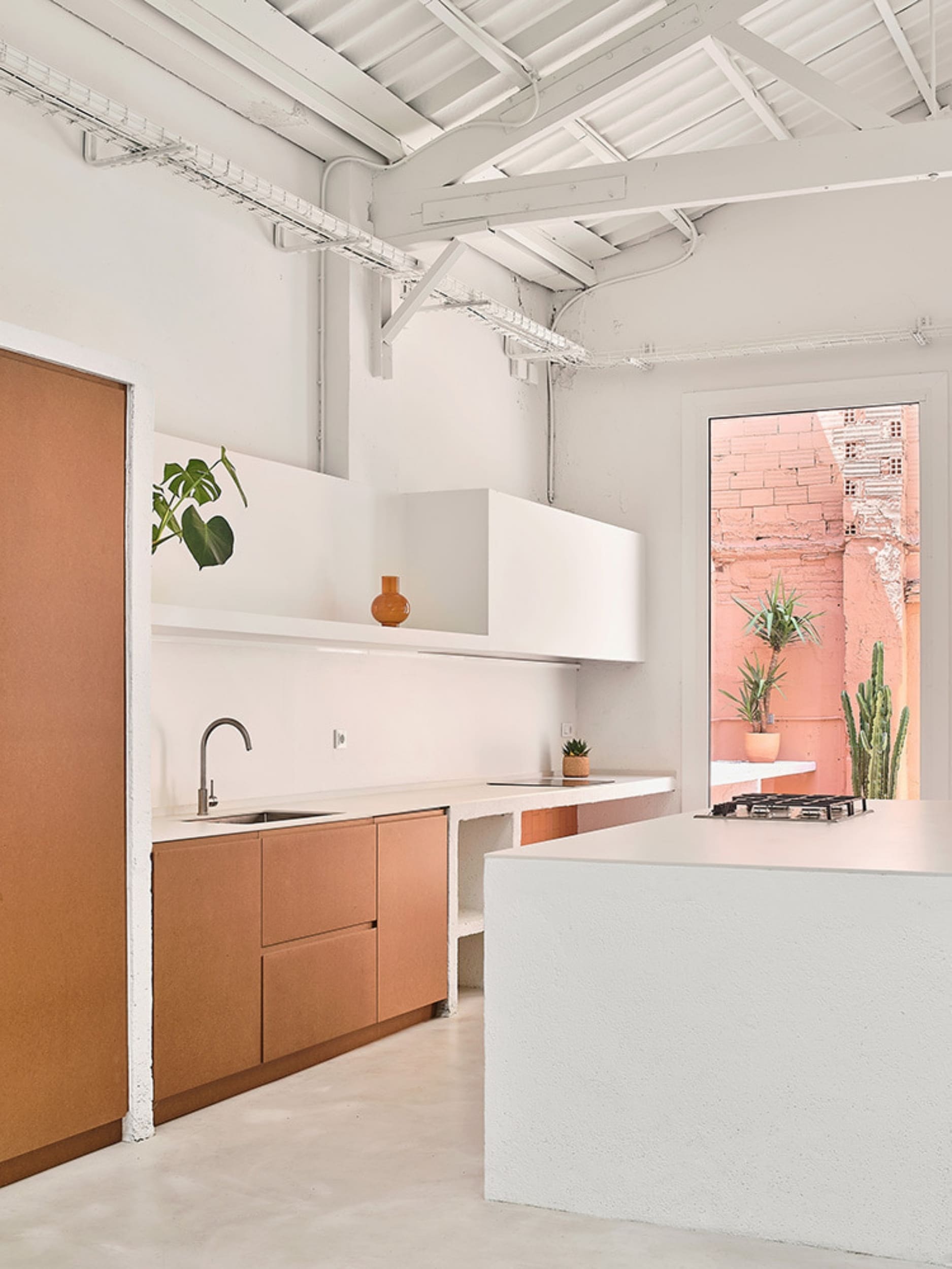 CODEA Reconversion of a store and adjoining warehouse into a multi-purpose office space for a creative agency. A central core for service areas functions as a transition between two large open spaces.