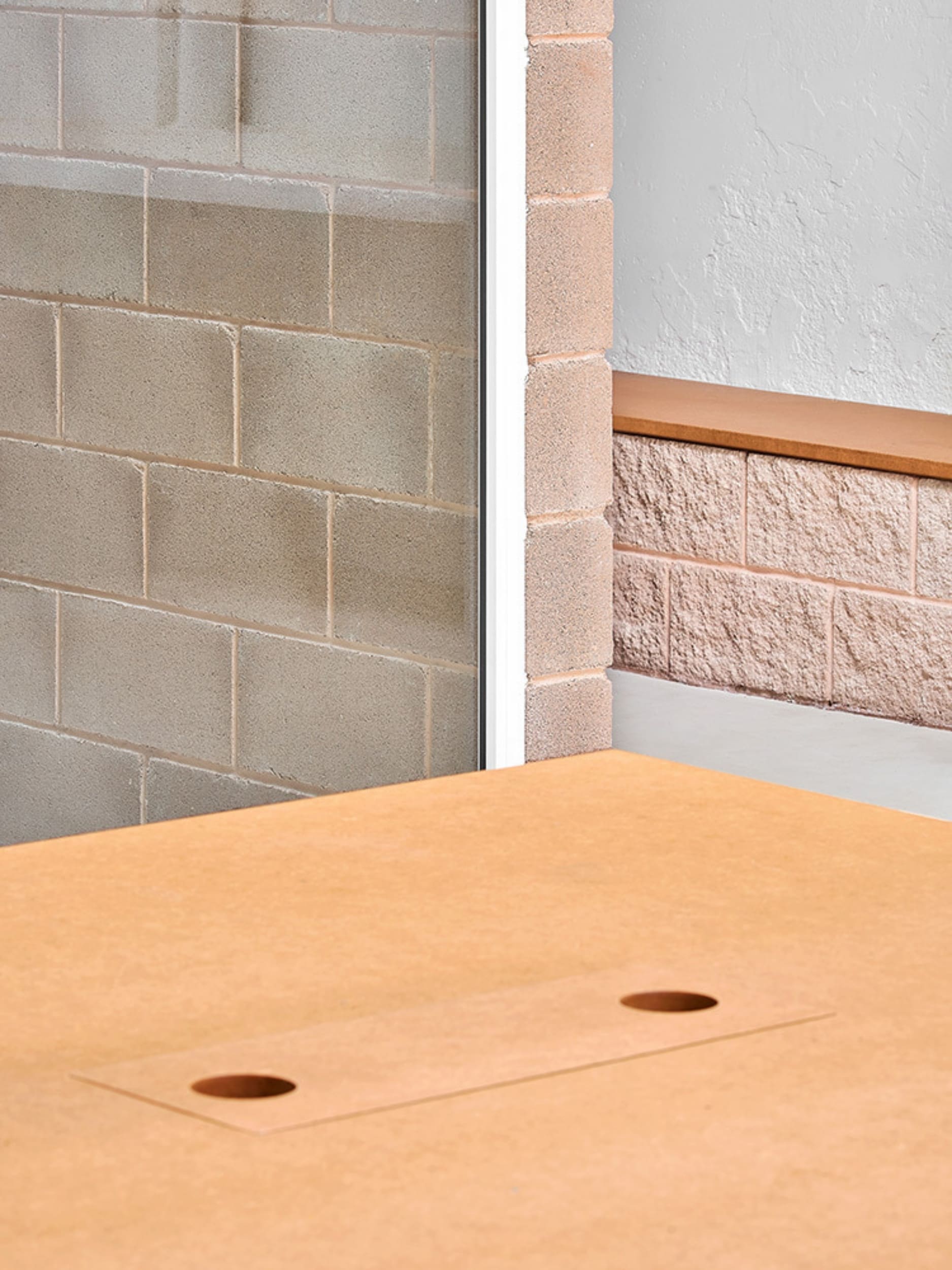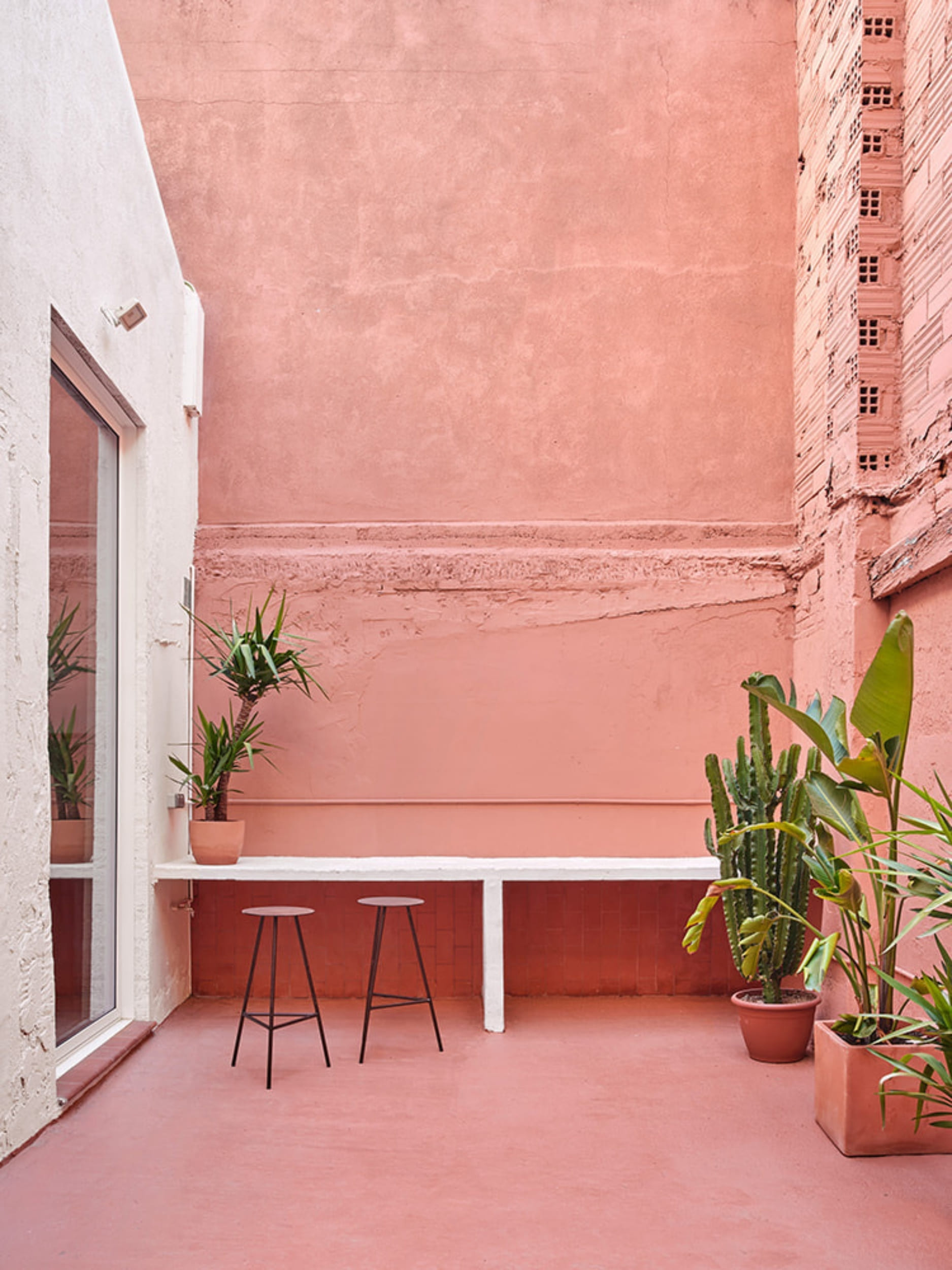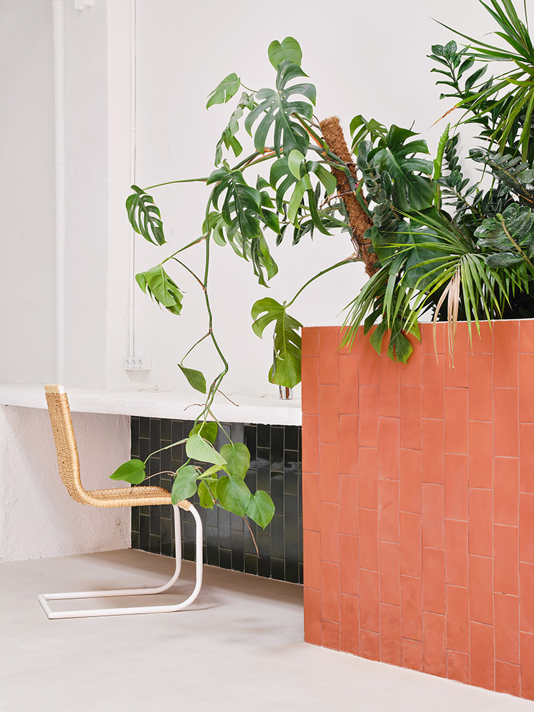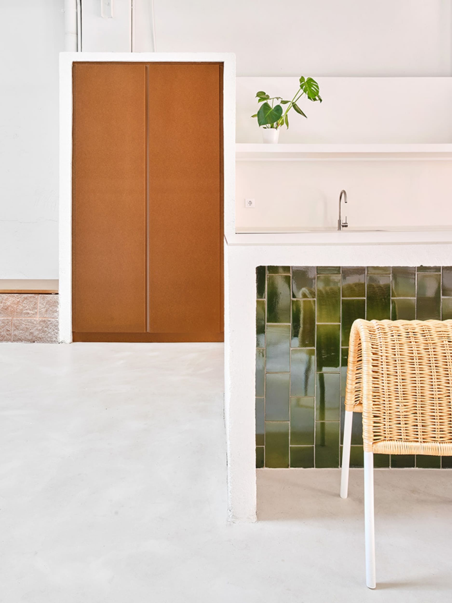 CODEA Reconversion of a store and adjoining warehouse into a multi-purpose office space for a creative agency. A central core for service areas functions as a transition between two large open spaces.