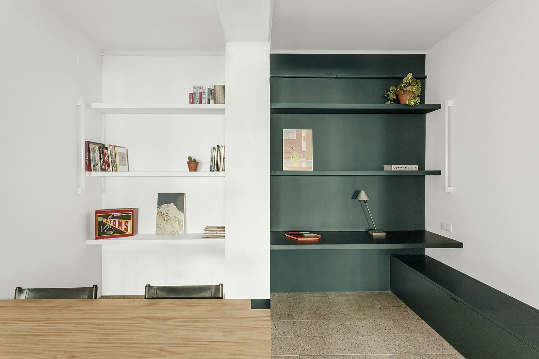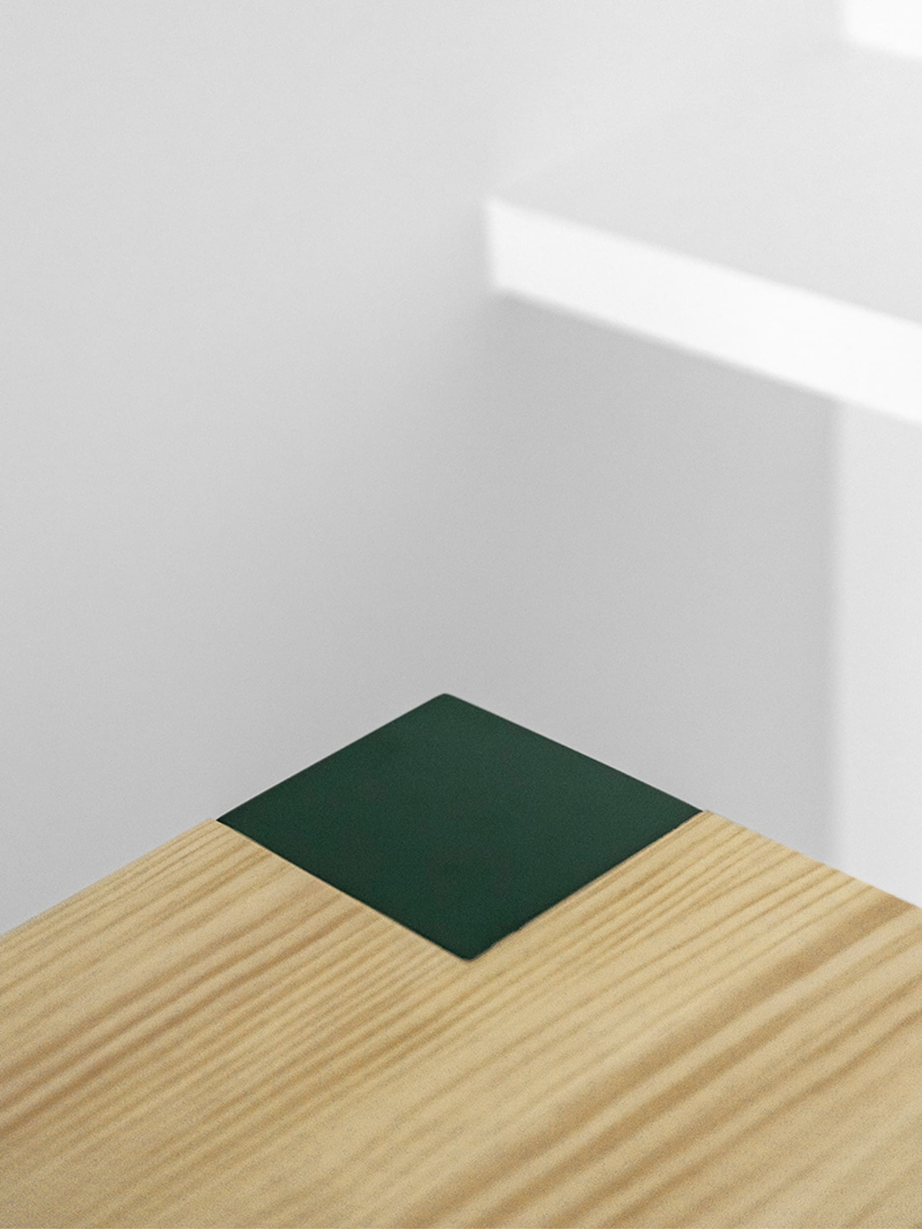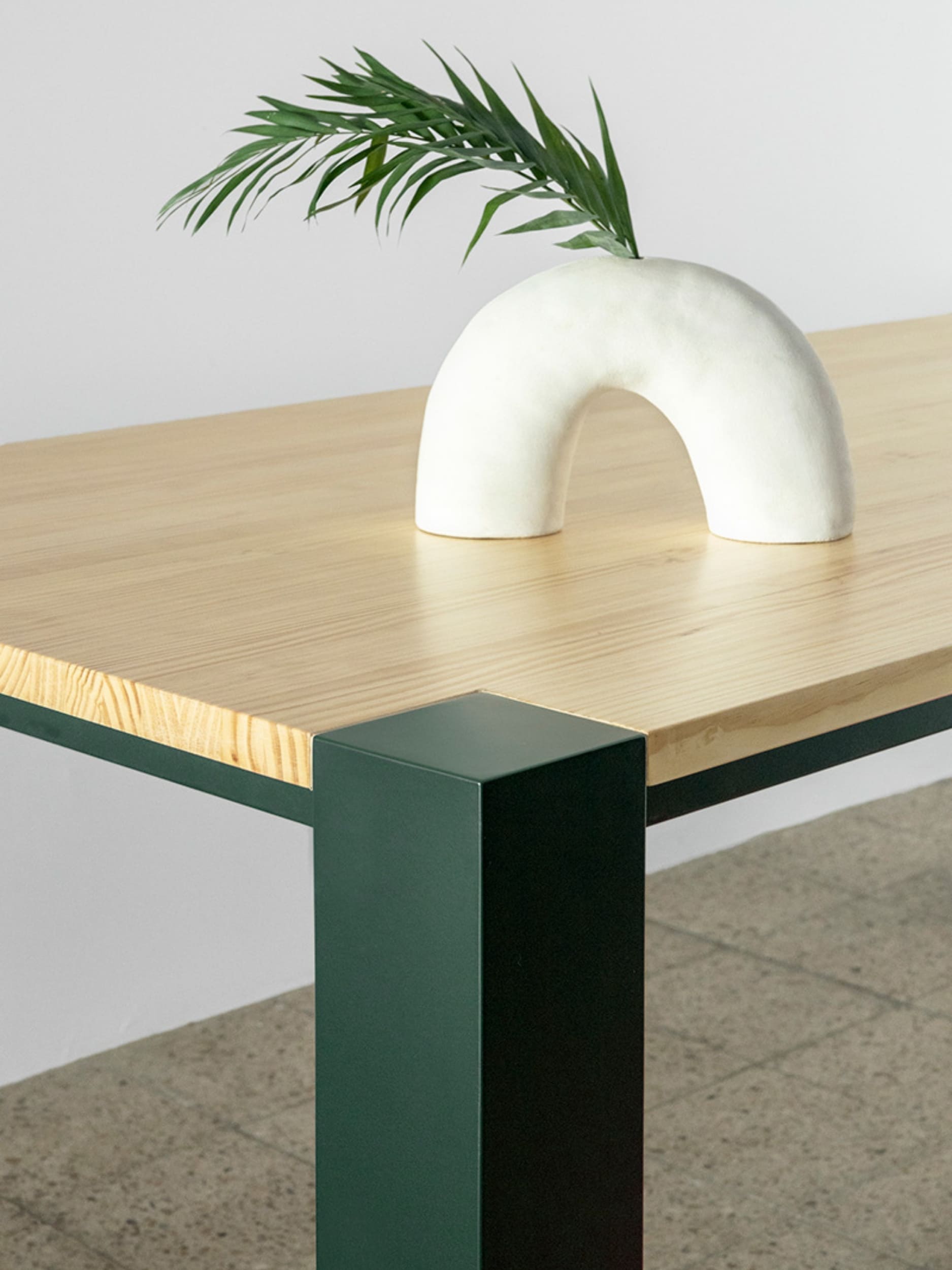 MARTE table Meeting room table designed for the workspace of Martes Studio. A fine pinewood board, supported by a metallic frame, contrasts with the sturdy legs that come through to the surface.