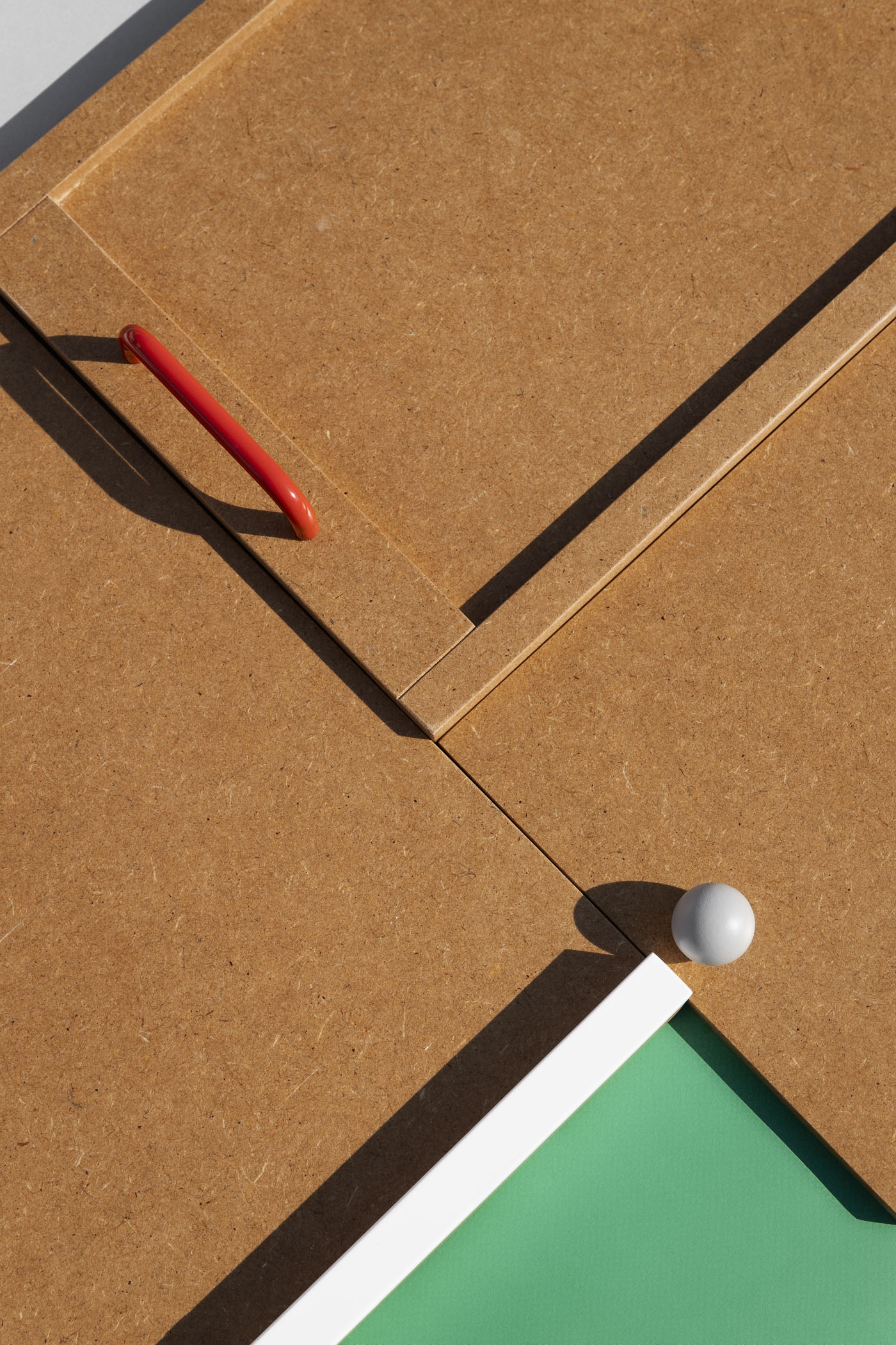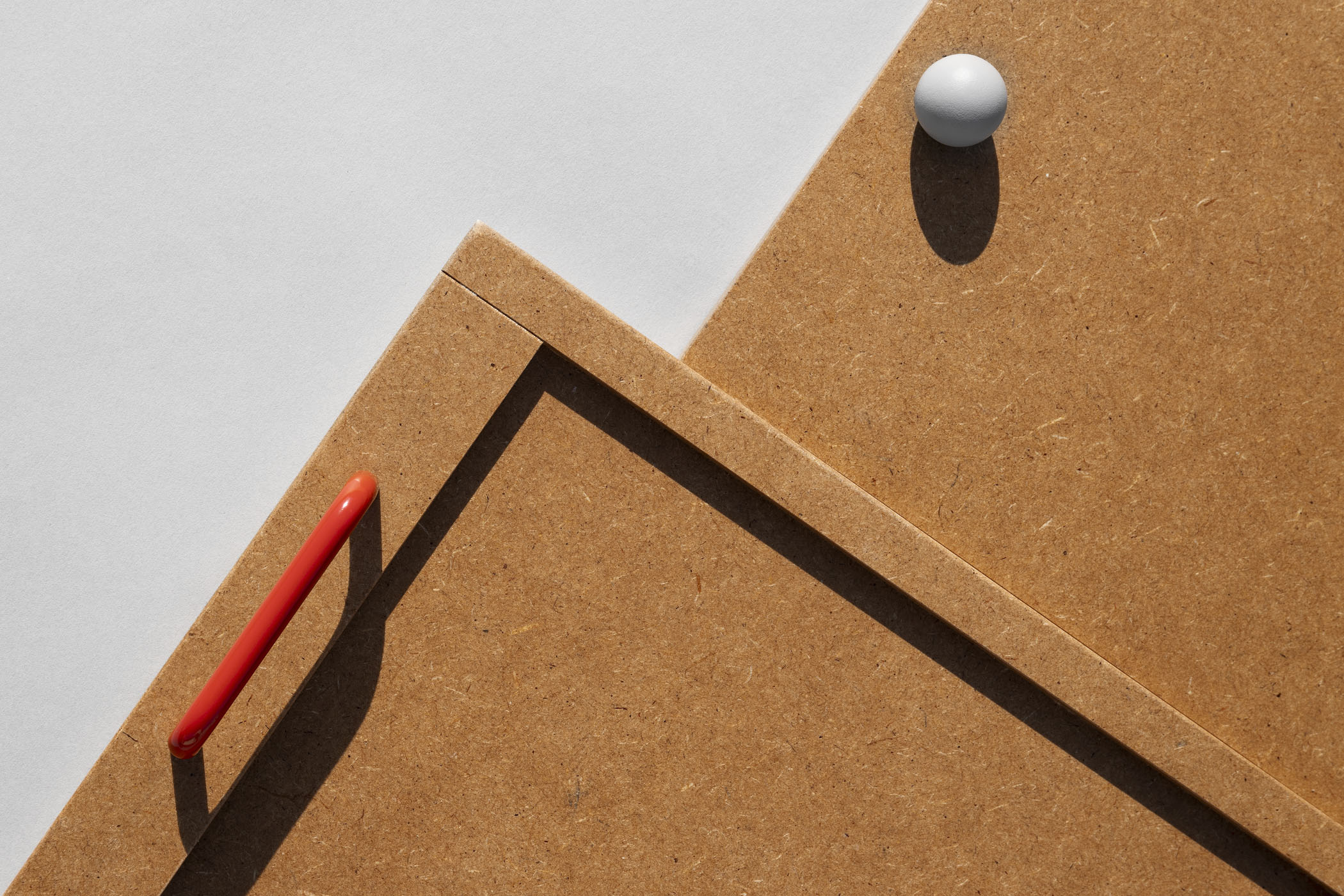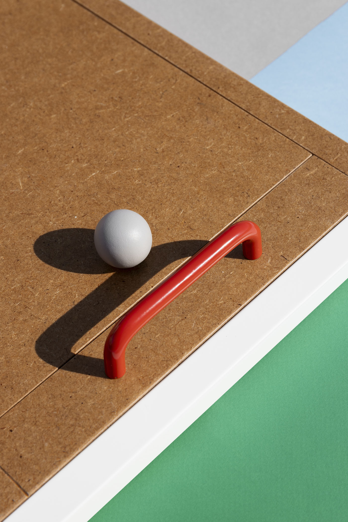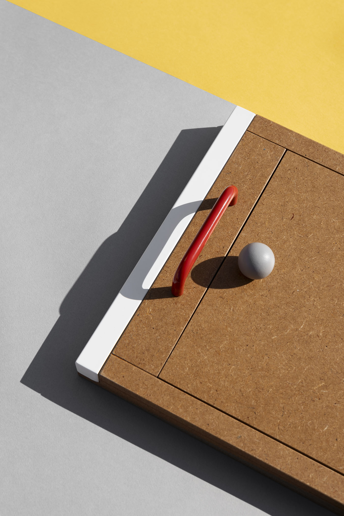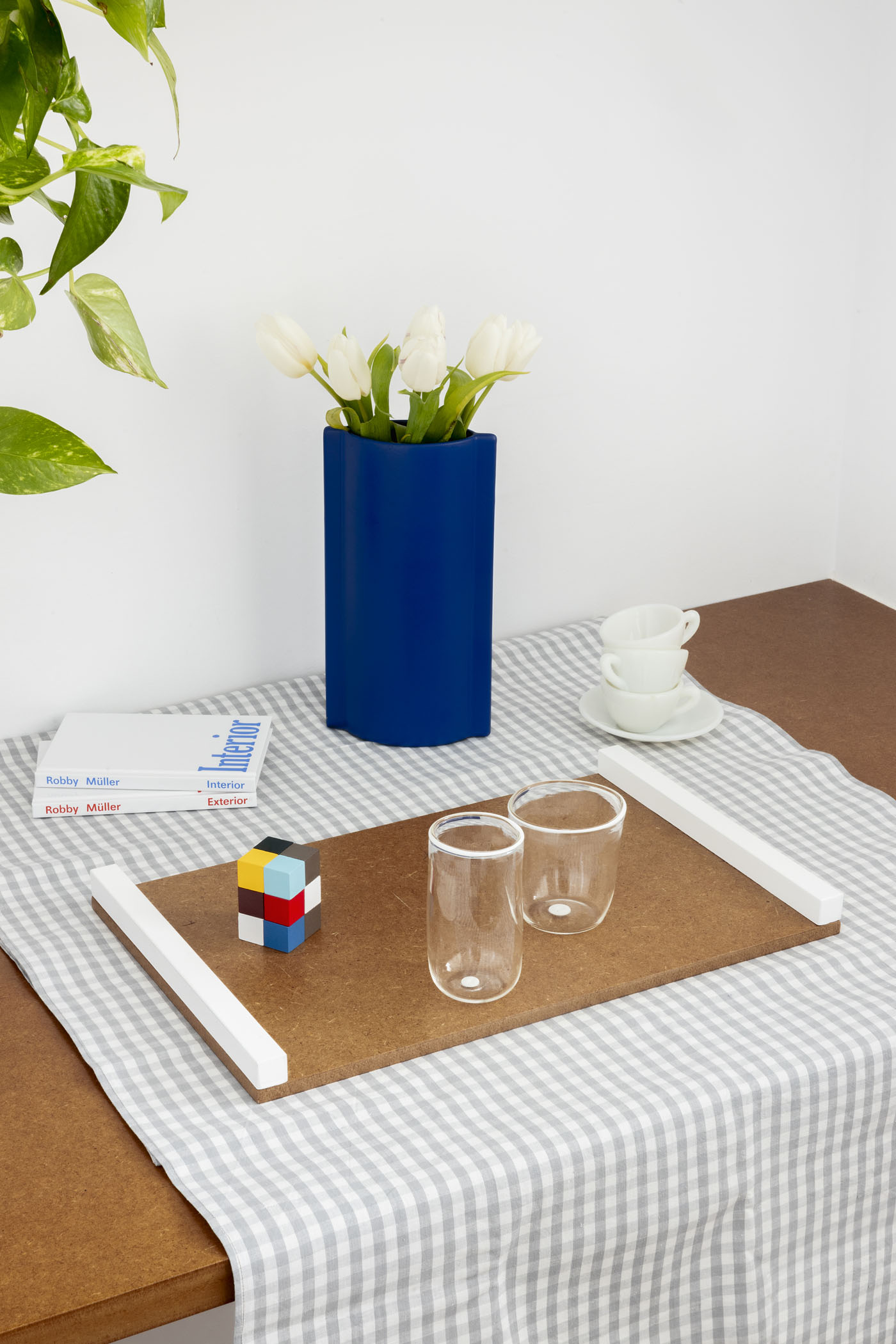 NIU tray Set of three multifunctional trays that fit one inside the other for easy storage. Its design of simple shapes with varnished mdf board and handles of different types and colors in each of them give singularity to the set.