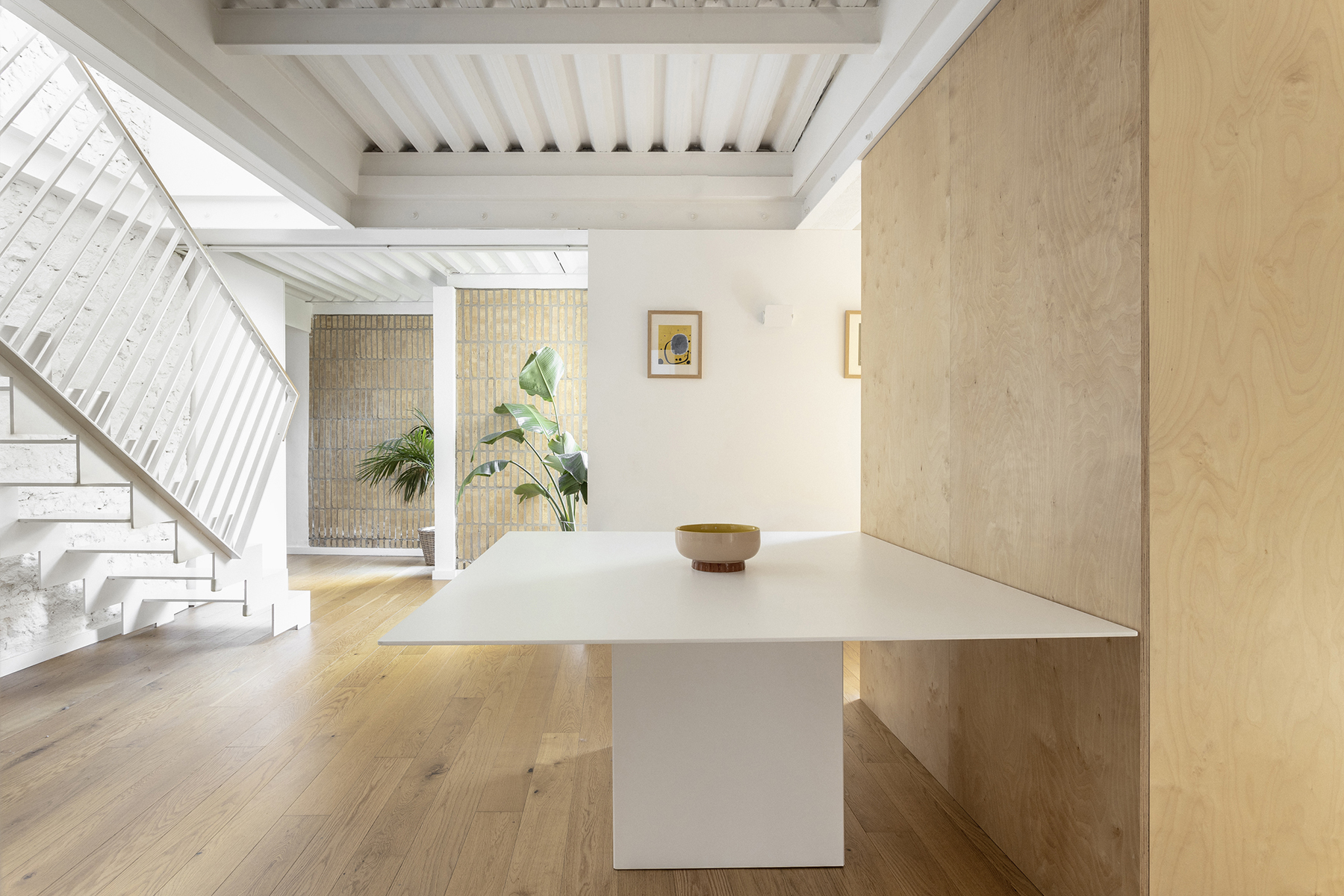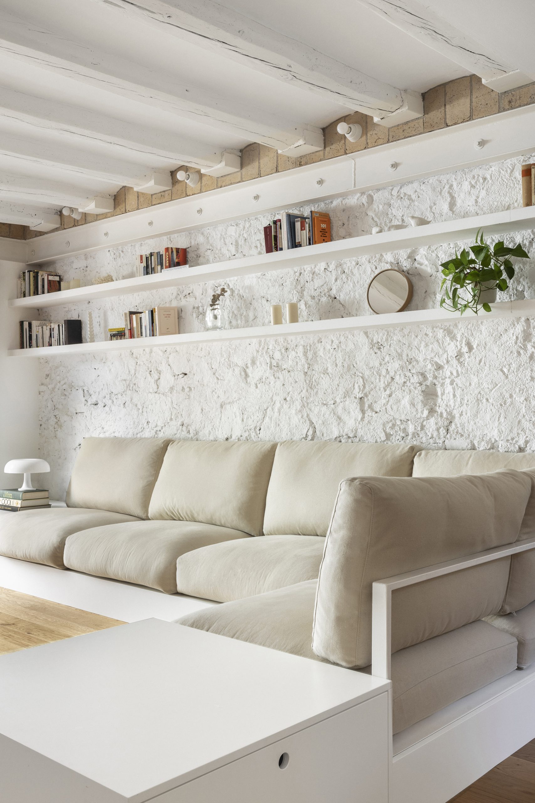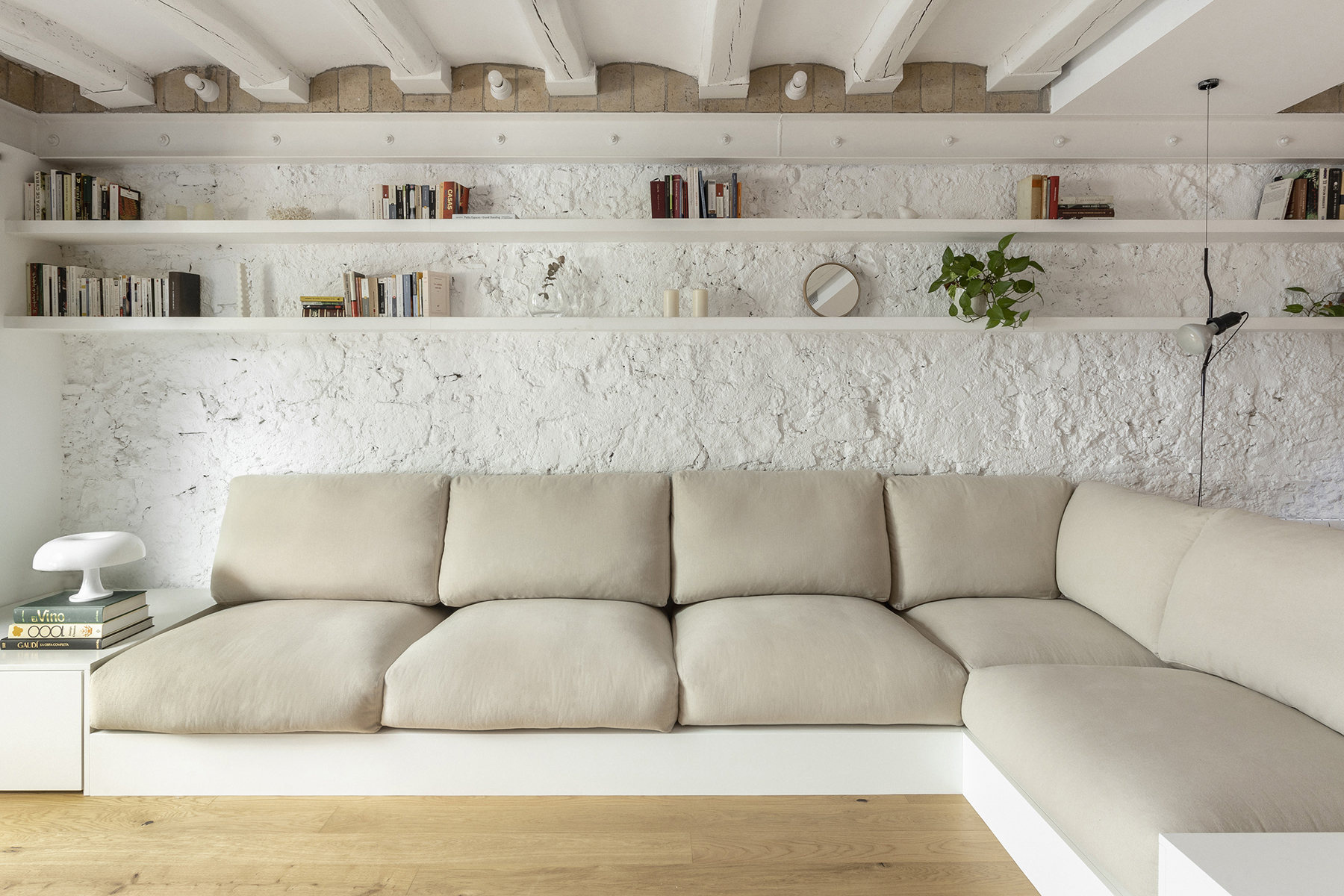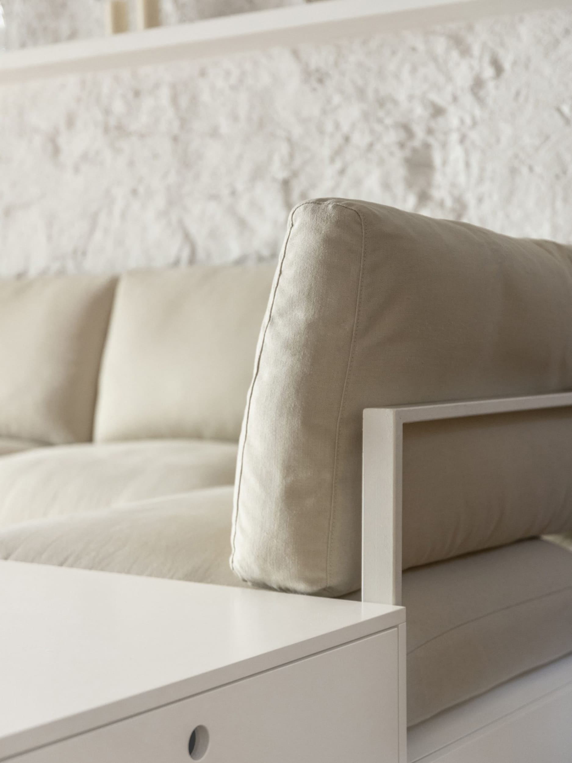 SANT RAFAEL Styling and design project based on the creation of custom-made furniture pieces for an old restored house, respecting the existing Mediterranean language and characteristics of its previous refurbishment. The various white elements are integrated into the space to enhance the functionality and comfort of the everyday use of the house.